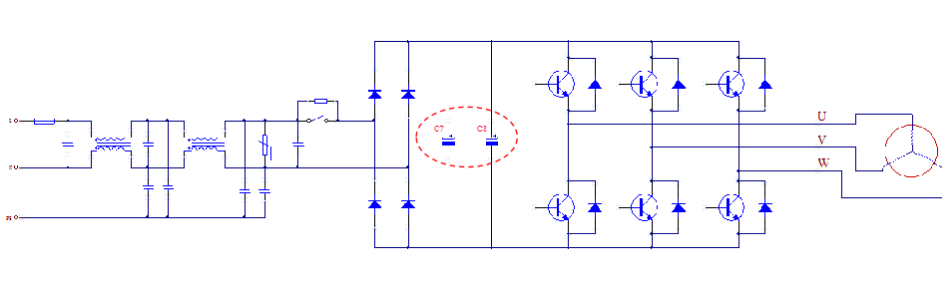Taking the three-phase inverter circuit in variable frequency air conditioner as an example, aluminum electrolytic capacitor plays an important role in low frequency filtering and energy storage buffering.