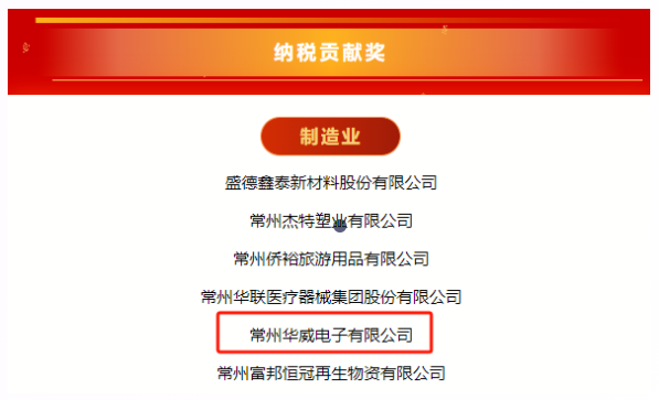 At the 2024 Enterprise Development Summit held by the Changzhou Municipal Government, Zhonglou District Government, and High-Tech Zone (Zouqu Town), ?Changzhou Huawei Electronics Co., Ltd.? was recognized as an outstanding enterprise, securing five prestigious awards?.
